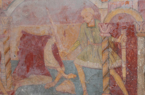 La mort de saint Jean-BaptisteOutre leur intérêt artistique évident, ces peintures sont une illustration des thèmes choisis pour décorer le sanctuaire des églises au Moyen-âge.